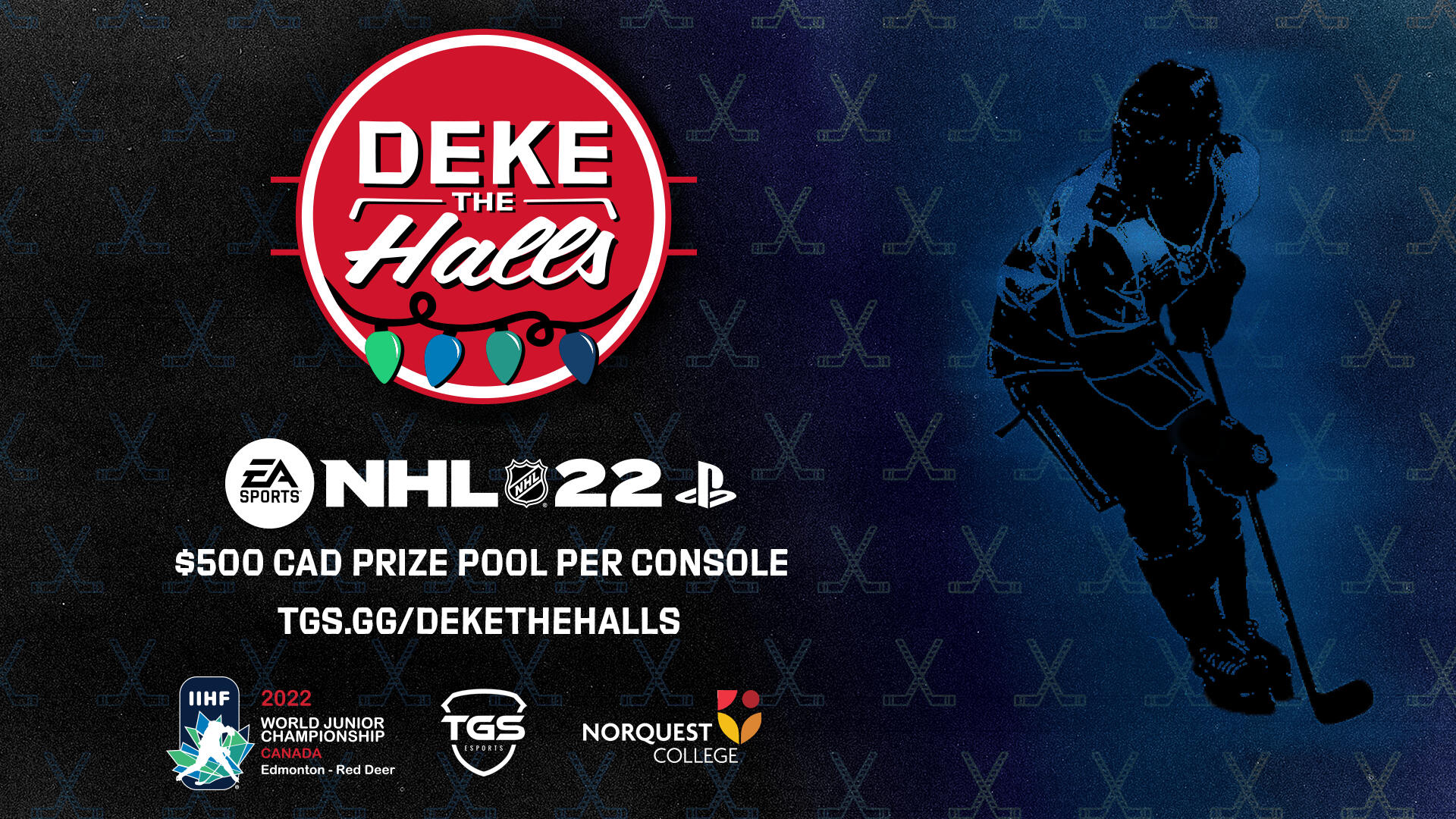 In collaboration with the IIHF for the World Junior Championship of Canada, TGS Esports hosted Deke the Halls: an online NHL tournament to mirror that of the real life tournament. Participating teams were also restricted to play teams exclusive to the World Junior as an added caveat to create a more robust experience surrounding the event. Branding developed to encapsulate holiday hockey, Deke the Halls derives from a favorite festive tune. A red circle emulates the holiday feeling, adorned by rope lights and placed within a familiar circle one might encounter in the rink. Traditional sports typography is used to emulate a classic hockey aesthetic alongside patterned, textured, festive assets for the full holiday hockey experience.Final deliverables included branding guidelines and identity, tournament graphics, social media promotional content, content addons, broadcast assets including animated visuals and completed showbuild as a VMix stream asset.