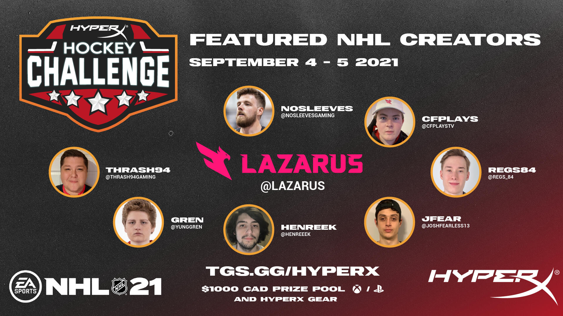 HyperX presents the HyperX Hockey Challenge in partnership, and in collaboration, with TGS Esports. Featuring show matches between NHL professionals both online and offline, as well as a community tournament to follow. The developed identity of the HyperX Hockey Challenge was to convert the HyperX brand to an adapted, inspired, iteration of the NHL 21 promotional aesthetic: strong colorful cropped textures, colored corrected photo manipulation, smaller decorative details and a bold mix of typography. Broadcast assets featured a unique holographic animated loop to create a visually engaging viewing experience.Final deliverables included branding guidelines, tournament graphics, social media promotional content, content addons, broadcast assets including animated visuals and completed showbuild as a VMix stream asset.watch here