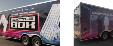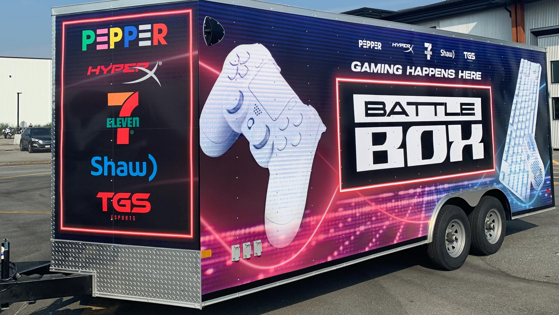 The esports and gaming experience hits the road in Canada! On behalf of TGS Esports and various partners, the Battle Box brand comes to life. Taking inspiration from a synthy 90s retrowave aesthetic, the logo adapts the timeless visuals of the 5th console generation adorned by CRT scanlines and emulated neon lights. GAMING HAPPENS HERE as demonstrated by the designed x-ray side panel featuring a look into the trailer with guests and gamers alike battling away in their console of choice. Controllers and keyboards hang loose on the printed back panel to hint at the exciting gaming experience to be had inside. A place for all to game: Battle Box is placed on show floors, posted at festivals or concerts or hanging around the afterparty. Developed exterior and interior mockups would generate the final creative vision in crafting and operationalizing a cohesive gaming experience.Final deliverables included branding guidelines and exclusive logo designs for merchandising, designed visual mockups and unique exterior wrap printables.Gaming happens here.