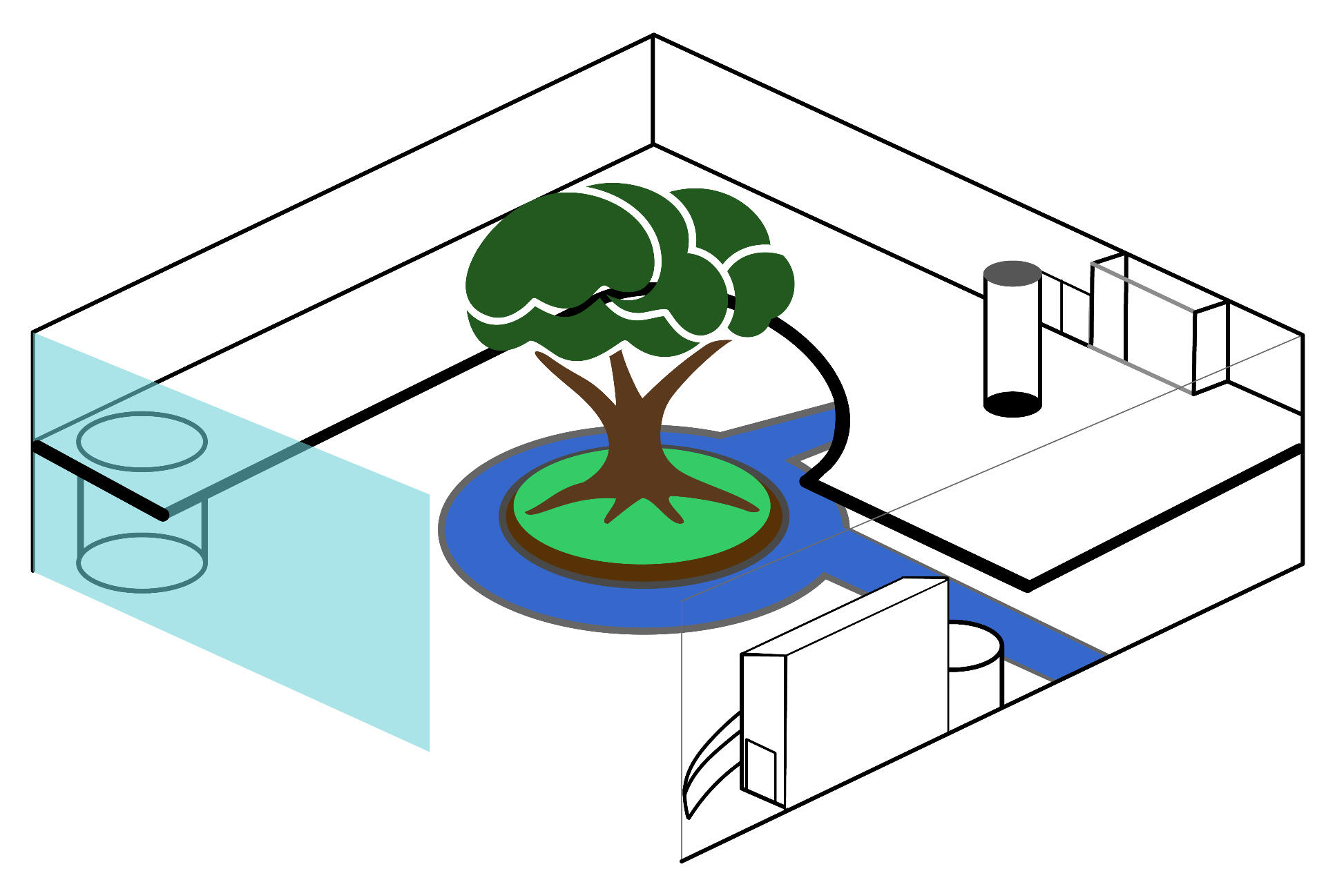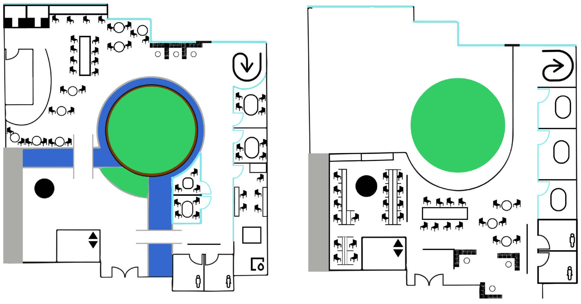 An abstract redesign and reconstruction of the current Communications study, learning and leisure space available at Mount Royal University. The design suggests a tear down of the traditionally separated first floor - broadcasting space - and the second floor, general communications space, to create a contemporary communication student space centred around an indoor park space, a cafe space, specialized print and design spaces, and lofted study spaces on the second floor overhang.The tear down of the traditional wall for a glass wall would further emphasize the living nature; the inviting of natural light into the educational environment.