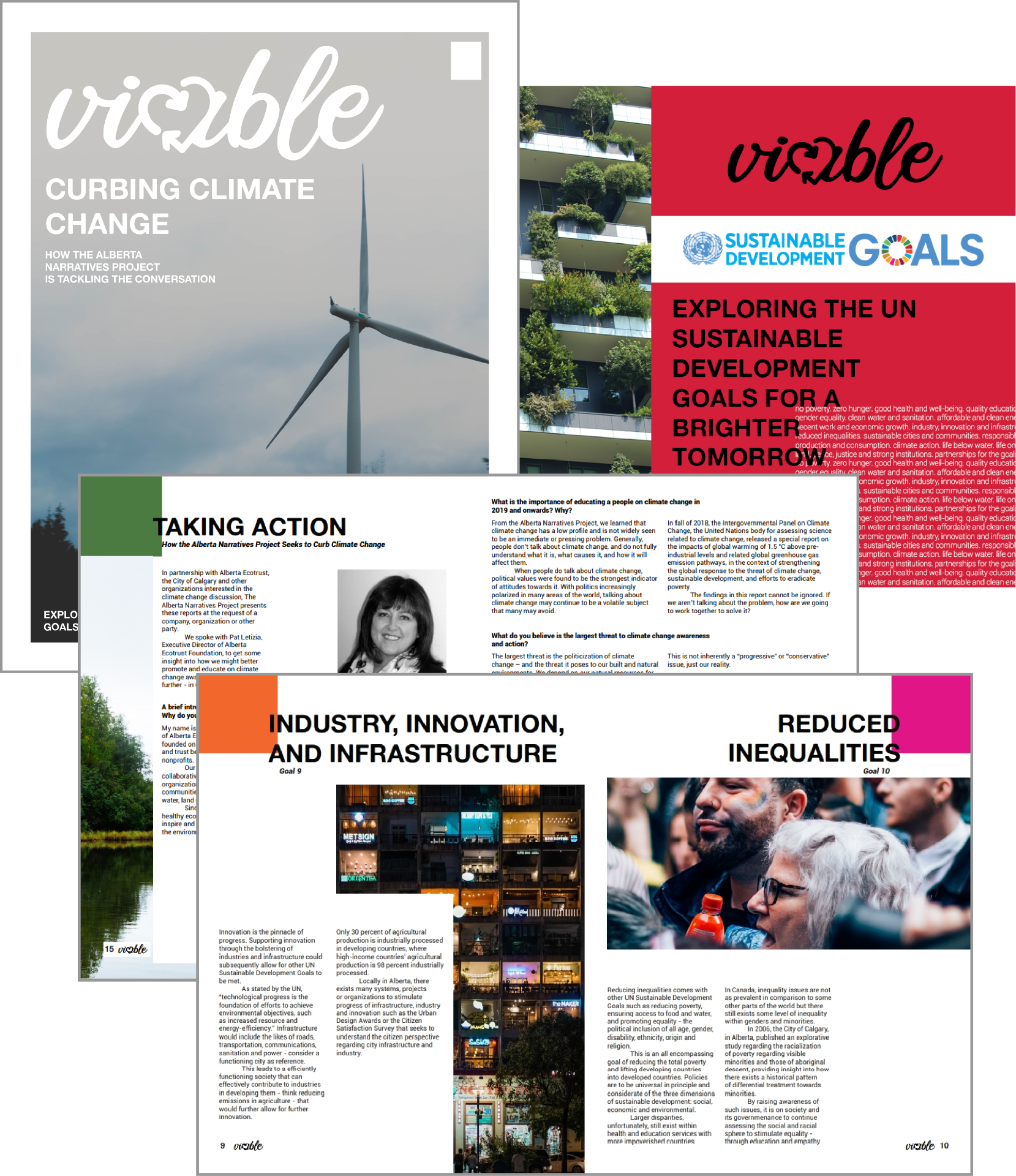 Viable - a magazine dedicated to discussing The 17 Goals in Sustainable Development proposed by the United Nations. Branding developed to reflect the nature of sustainable development - typographic styling surrounding a heart shaped recycle logo. Research of each topic constructs the technical writing pieces and articles throughout the magazine in creating an engaging and educative reading experience.The magazine also features an exclusive interview discussing the UN Goal of addressing climate change with a local subject matter expert. Magazine design asserts hierarchical and considered principal in the development of content with a modern aesthetic.