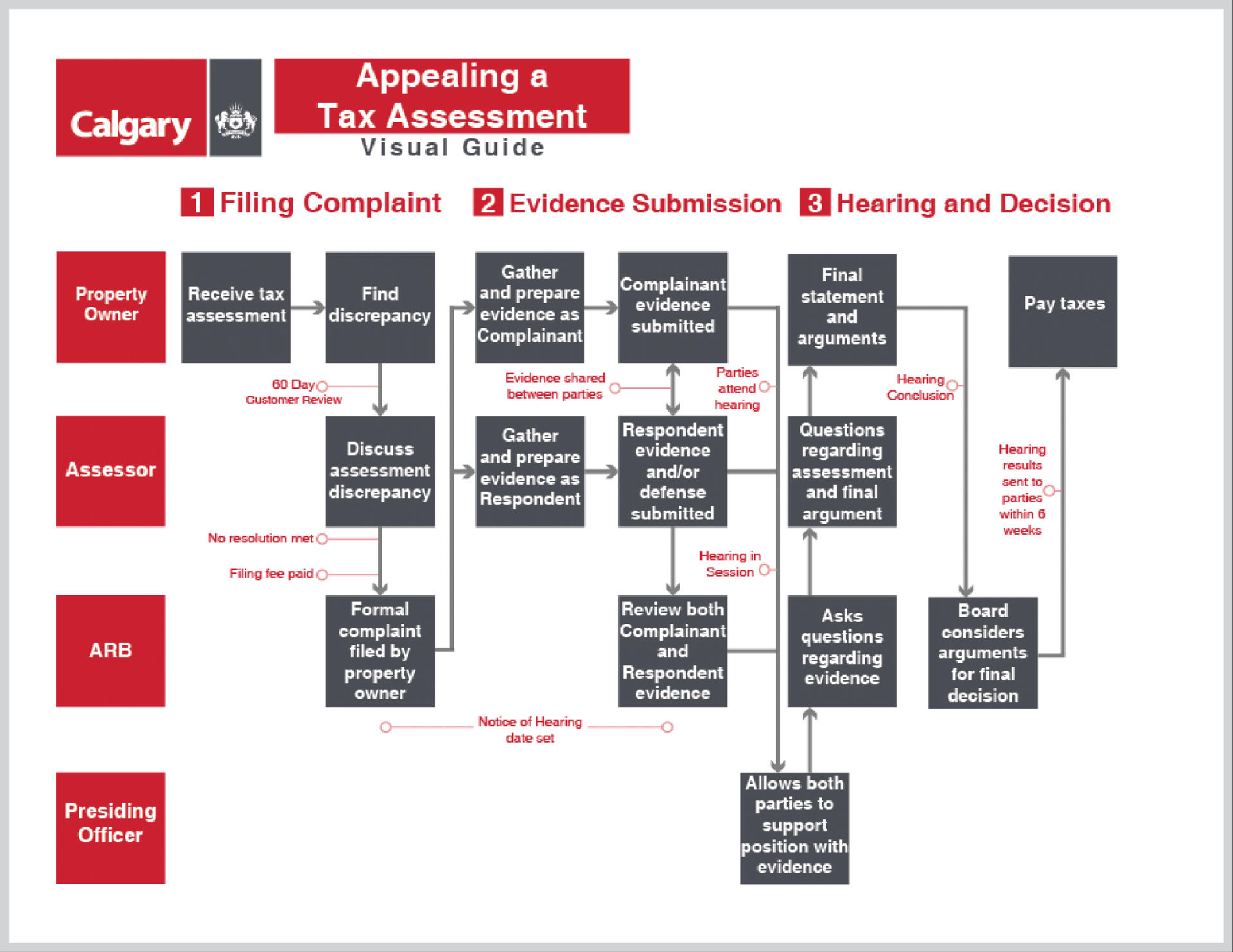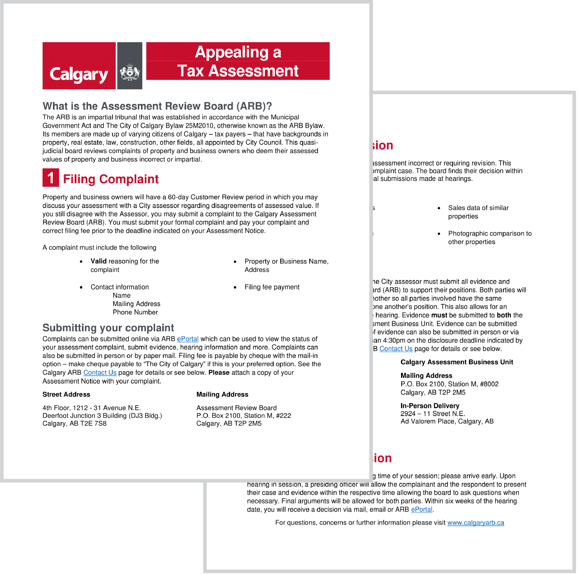 A developed document used to better communicate the process of appealing a tax assessment - including a visualized flowchart of said process. Information is provided directly from the City of Calgary website, for citizens of the city. The development of this document considers information architecture elements: layout, properly structured information blocks, hierarchy and gestalt principles.Provided information synergized and formed into engaging, understandable, readable blocks of information to fit the form of 3 pages – 2 pages including a flowchart. Usability takes precedence in developing instruction throughout the process. Formality was absolute in developing this document to assure alignment and consistency with the professional brand standards of the City of Calgary.